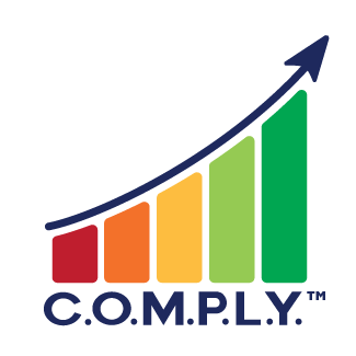 COMPLY logo is 5 bar graphs in different colors with an arrow point upward to represent Controls define the Outcome, while Methodology and Processes Leverage your security compliance to demonstrate and achieve it, driving Your success